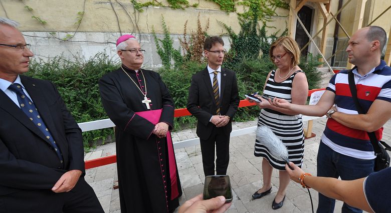 Cser-Palkovics András polgármester arról beszélt a sajtótájékoztatón, hogy egy fontos problémát kell összefogással megoldani. „Teljesen természetes volt, hogy amikor levelet kaptunk az egyházmegyétől, elkezdtünk azon gondolkozni, hogy a város is szeretné kivenni a részét az együttműködését. Augusztus 29-én beterjesztem a közgyűlés elé azt a javaslatot, hogy a város önkormányzata százmillió forinttal járuljon hozzá a Bazilika homlokzatának és tetőszerkezetének felújításához. Közösen megvizsgáljuk továbbá a Bazilika környékének a megújításának lehetőségét, hiszen a belvárosunk egyik ékkövéről van szó. Szeretném megköszönni a kormányzatnak, hogy a város segítségére sietett.”