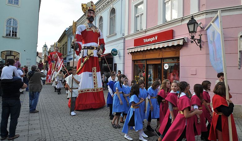A programra ellátogatók újra megcsodálhatták a látványos történelmi felvonuláson a közel öt méter magas óriásbábokat, akiket zenészek és hagyományőrzők kísértek a Koronás Parktól a Szent István térig. A menetben a Rajzolni király! pályázat legjobb alkotásaiból készült zászlókat is meg lehetett tekinteni.