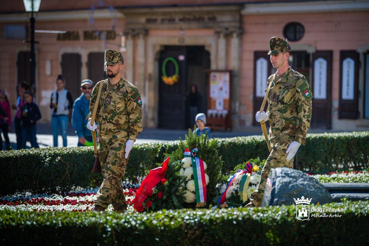 A Szentlélek katonatemetőben Mészáros Attila alpolgármester és Tanka Csaba, a Fejér Megyei Közgyűlés alelnöke rótták le tiszteletüket, majd a Béke téri orosz katonatemetőben Deák Lajosné önkormányzati képviselő és Wilmek Tibor alelnök tisztelegtek a hősi halottak emléke előtt.